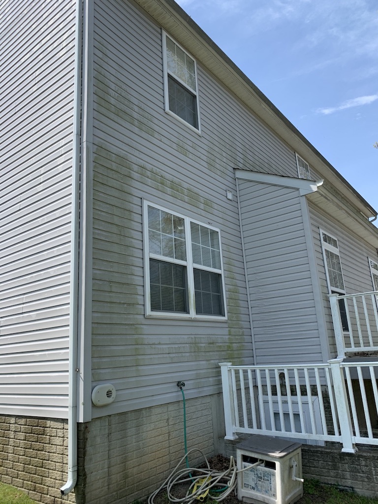Patio furniture was removed, cleaned and replaced. All mildew was treated and removed. Cleaning agents used will significantly slow its future growth.